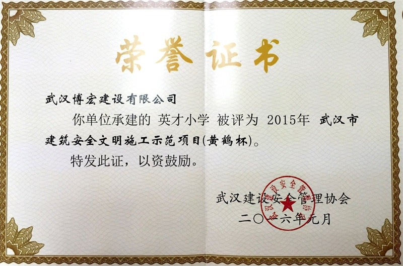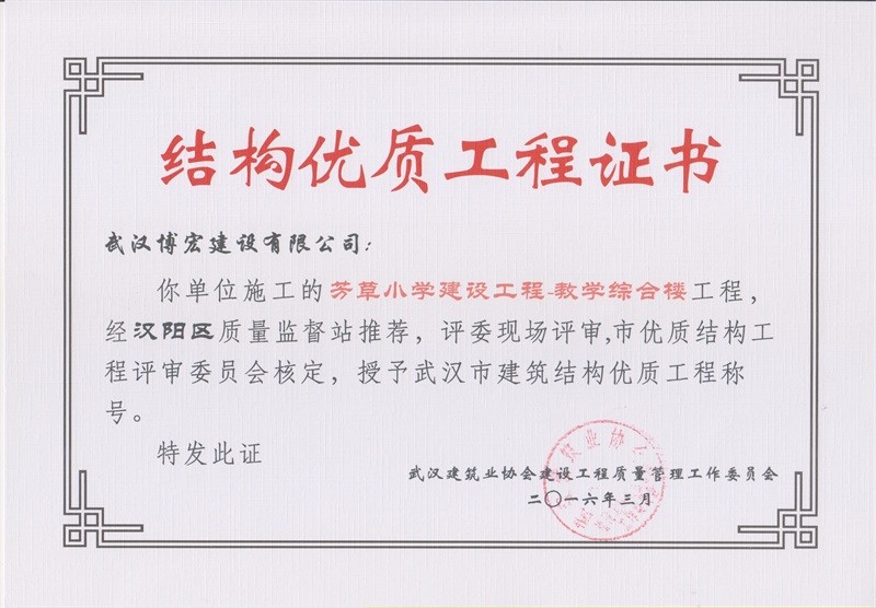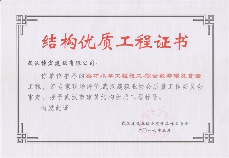 英才小學-綜合教學樓及食堂結構優質工程證書