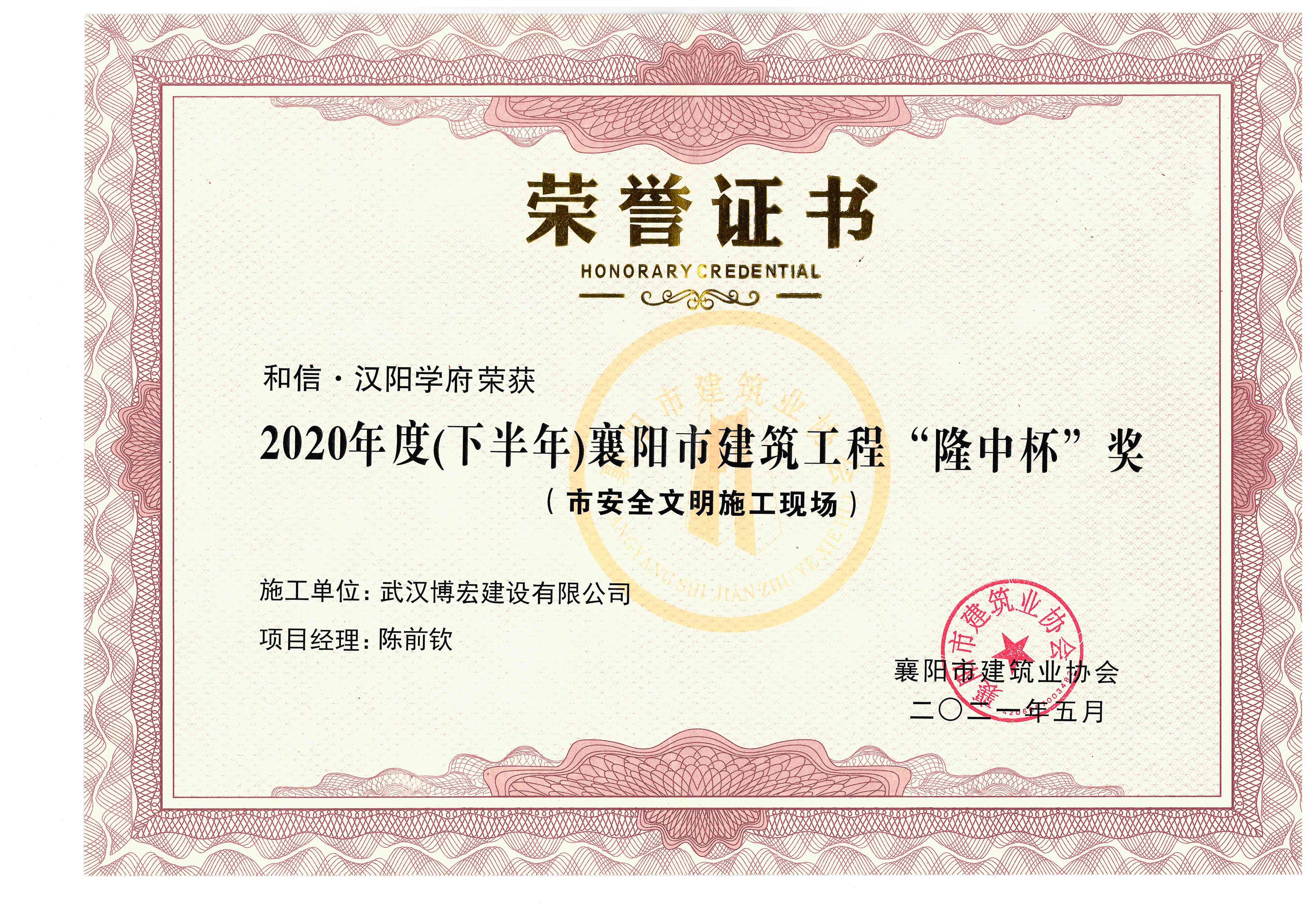 和信·漢陽學府2020年度(下半年)襄陽市建筑工程“隆中杯”獎(市安全文明施工現場