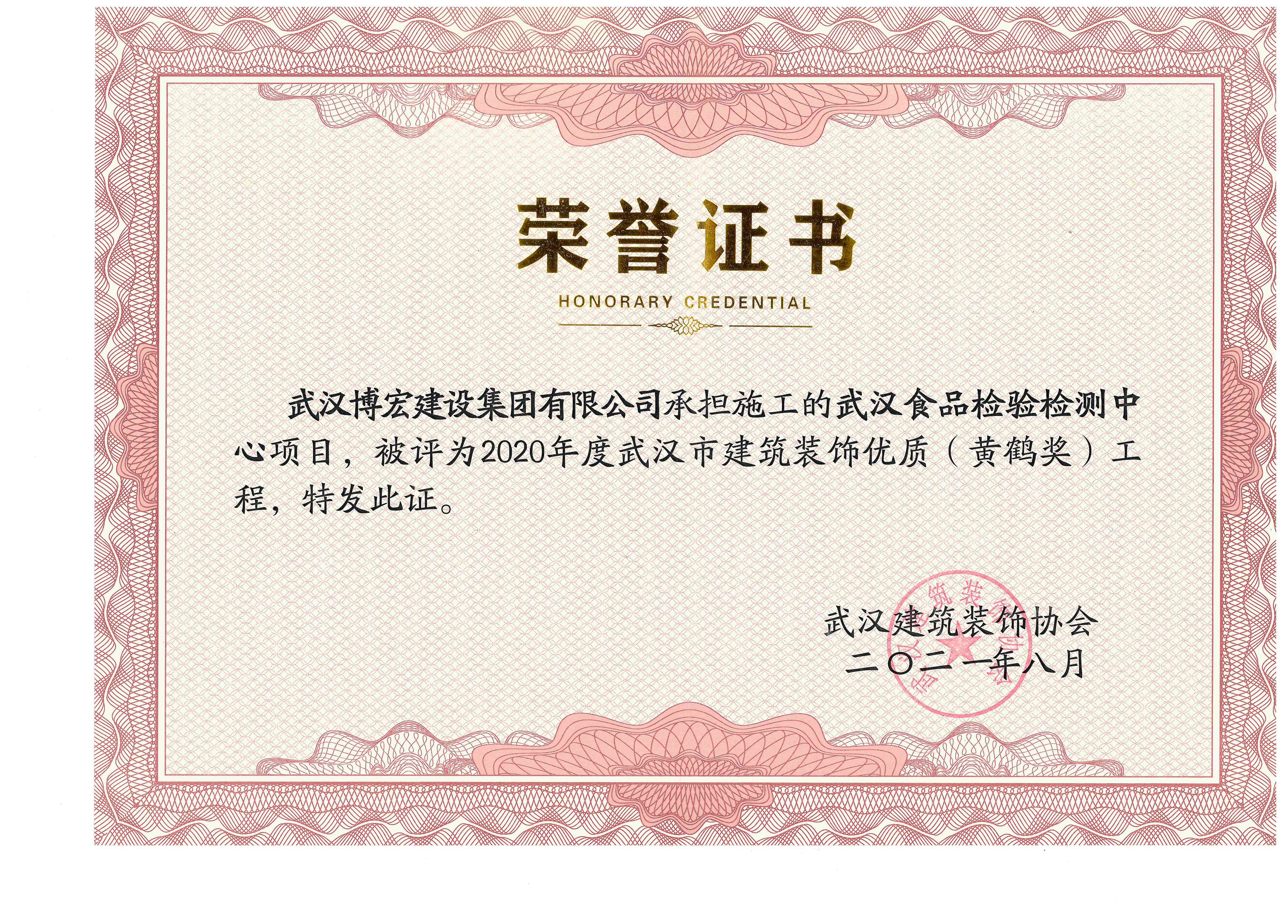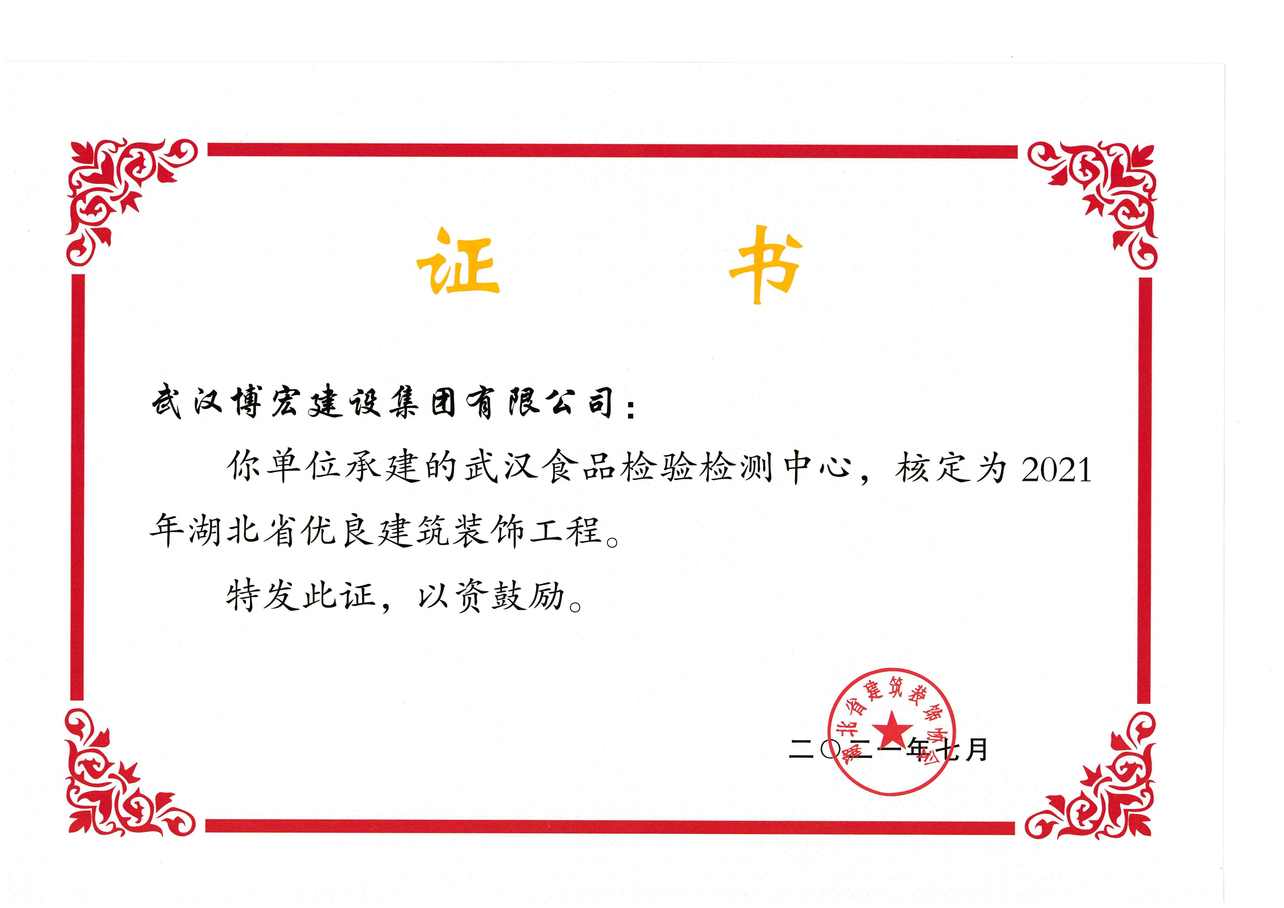 2021年度湖北省優良建筑裝飾工程(食檢中心)