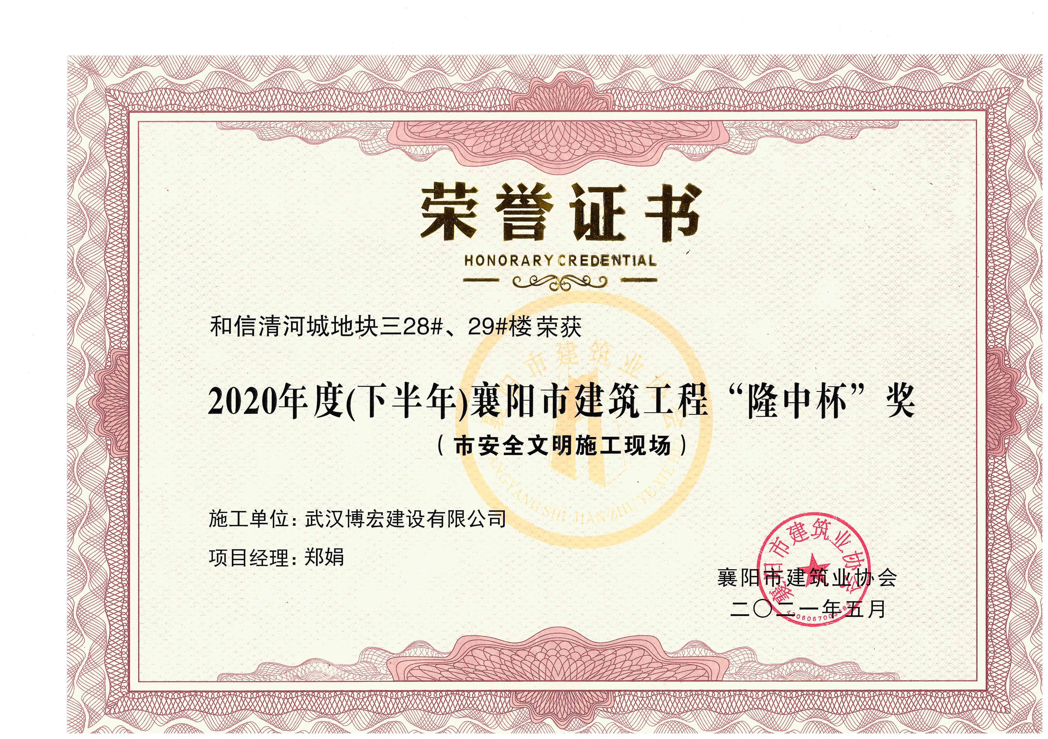 和信清河城地塊三28#、29#樓2020年度(下半年)襄陽市建筑工程“隆中杯”獎(市安全文明施工現場