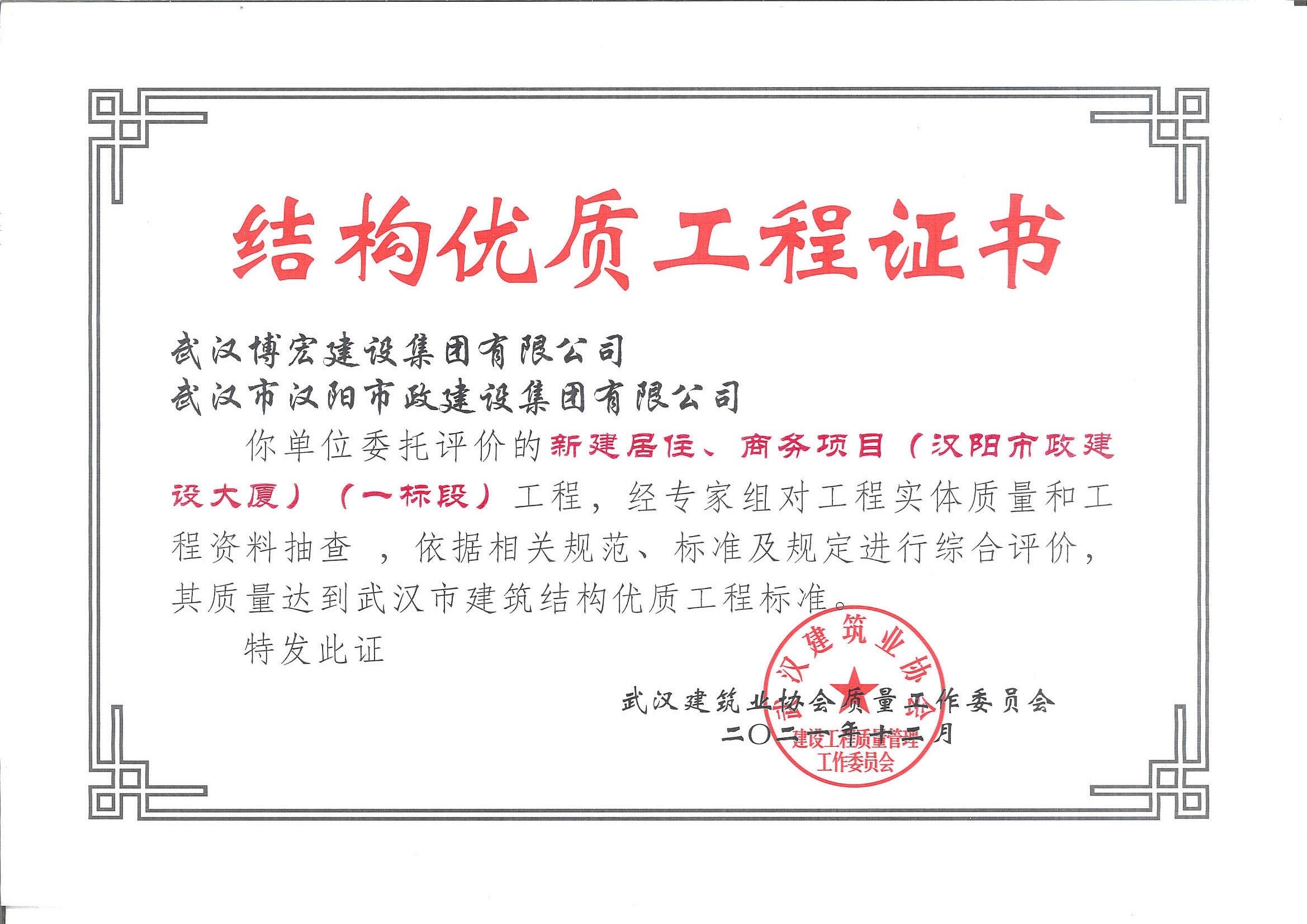 武漢市建筑結構優質工程 漢陽市政大廈(一標段)
