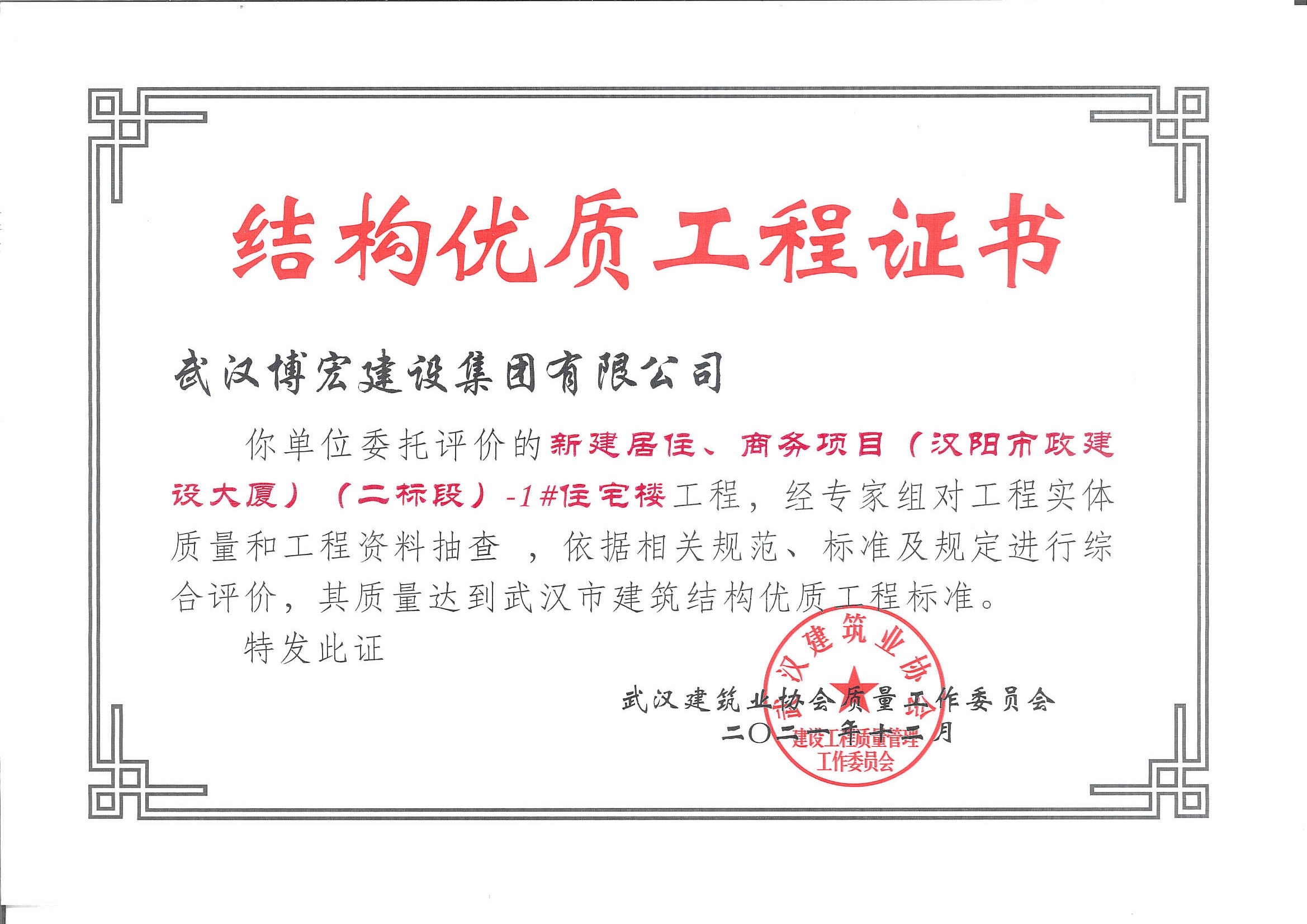 武漢市建筑結構優質工程 漢陽市政大廈(二標段)-1#住宅樓