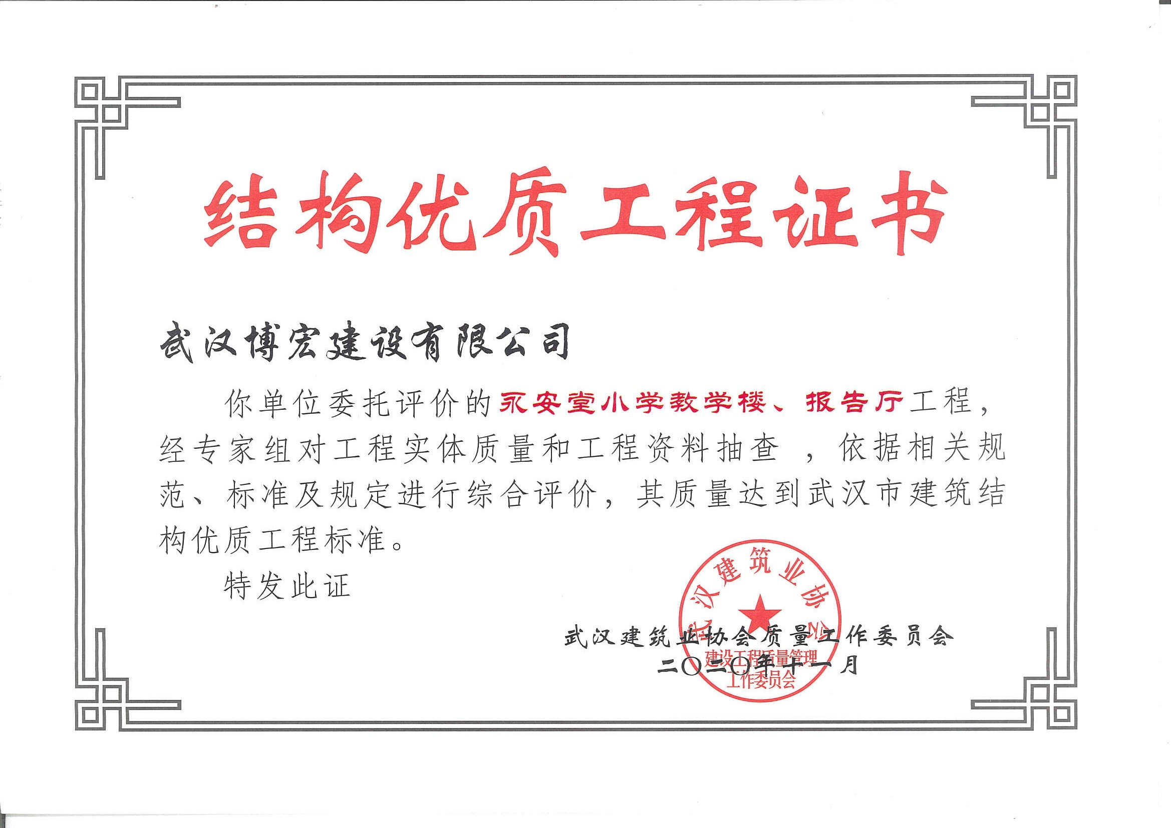 永安堂小學教學樓、報告廳武漢市建筑結構優質工程