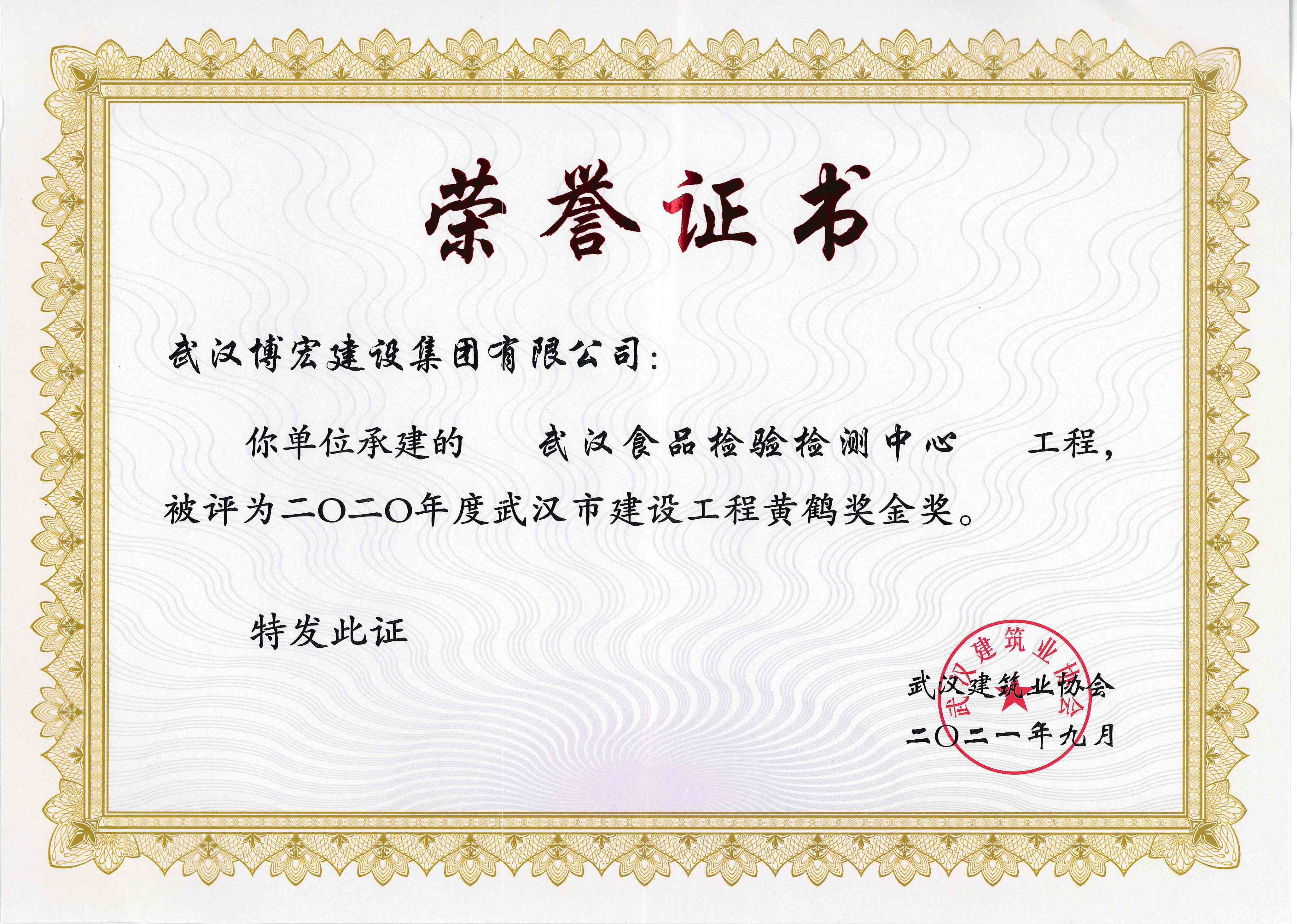 2020年度武漢市建設工程黃鶴獎金獎(食檢中心)