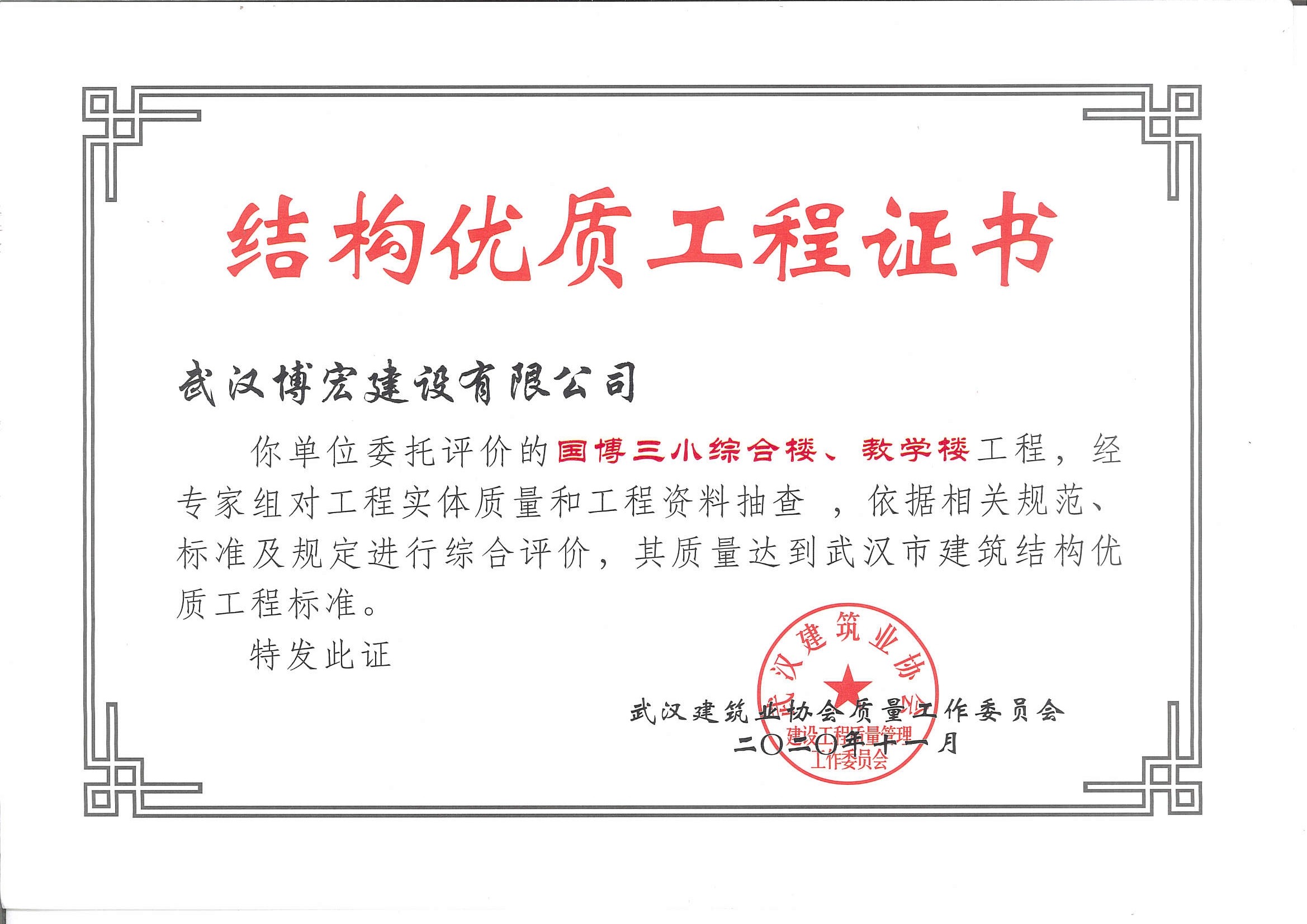 國博三小綜合樓、教學樓武漢市建筑結構優質工程