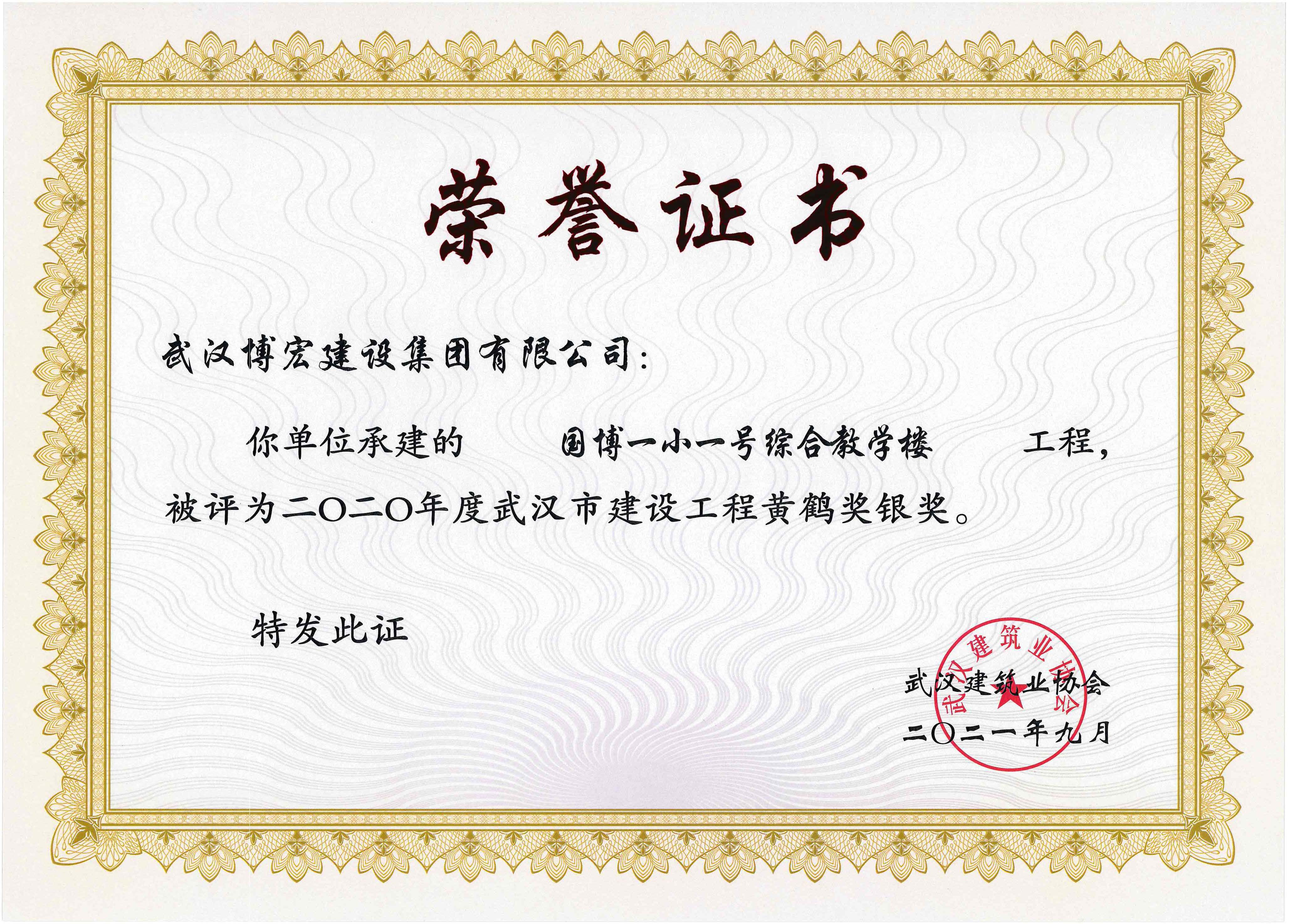 2020年度武漢市建設工程黃鶴獎銀獎-國博一小一號綜合教學樓